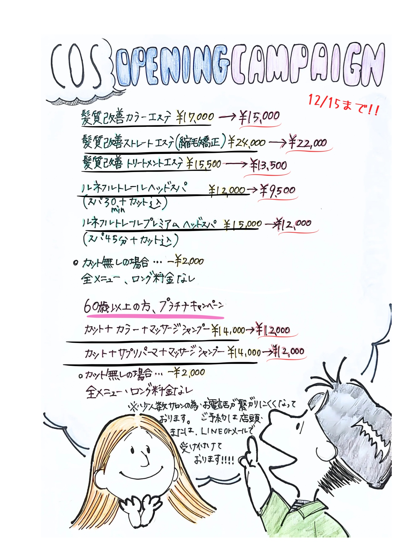 まだcosにご来店されたことがないお客様、まだまだオープンキャンペーンをやっていますのでこの機会に是非ご利用ください!